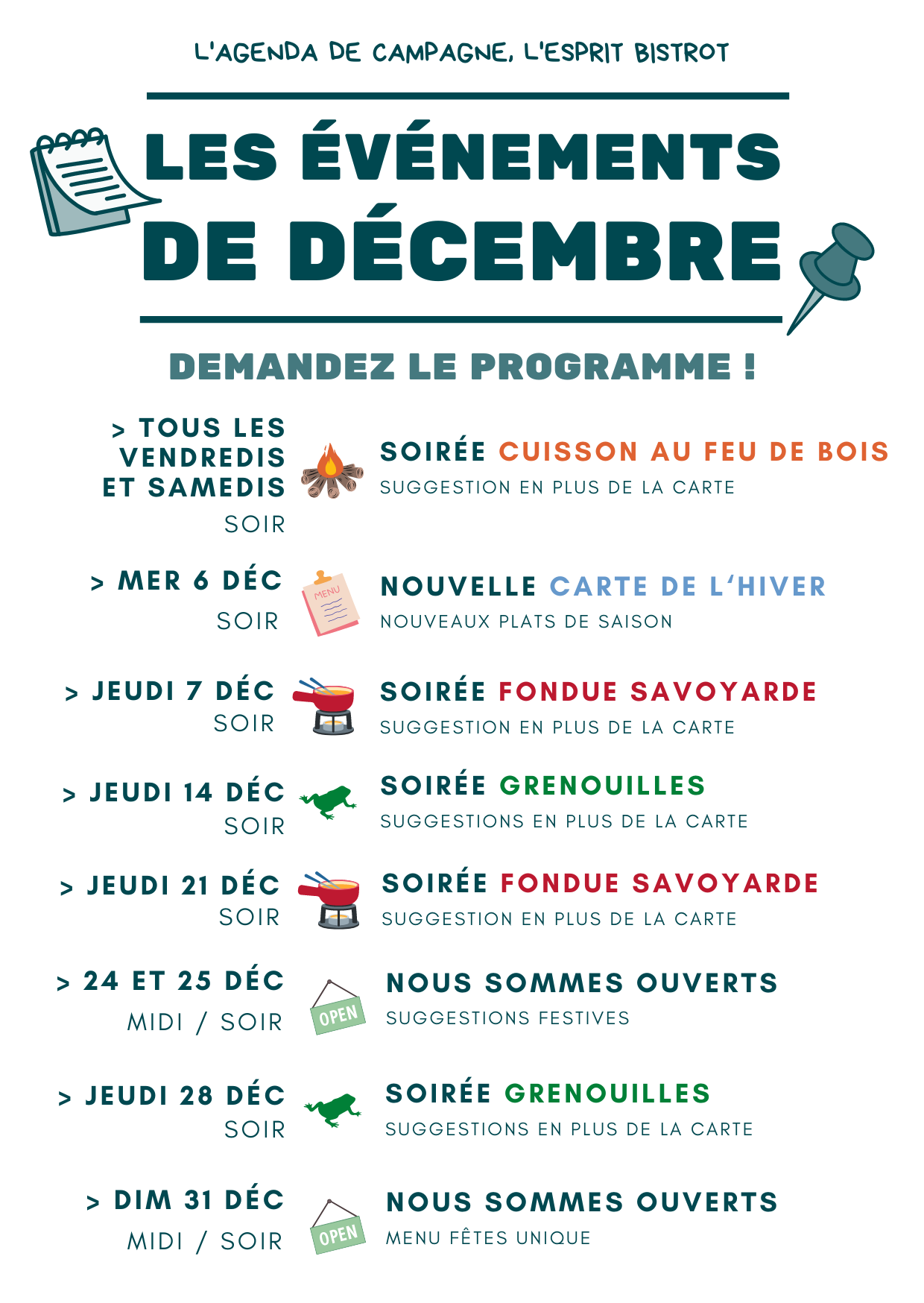 Les jeudis 7 et 21 décembre · Campagne, L’Esprit Bistrot